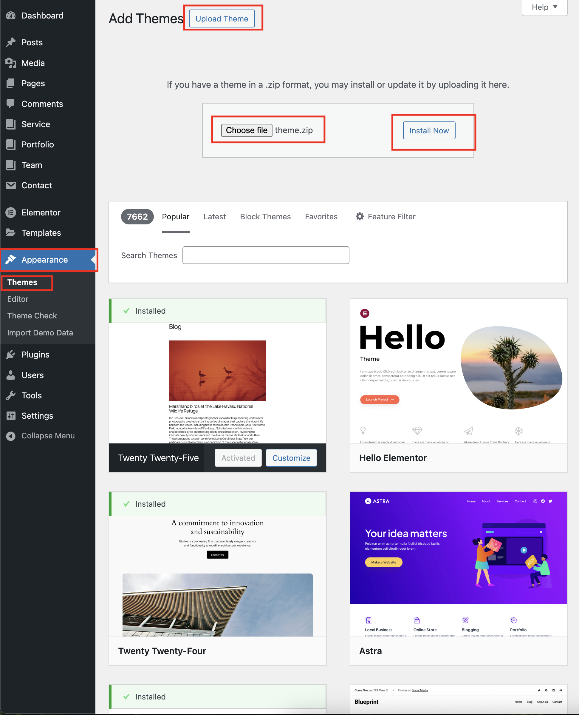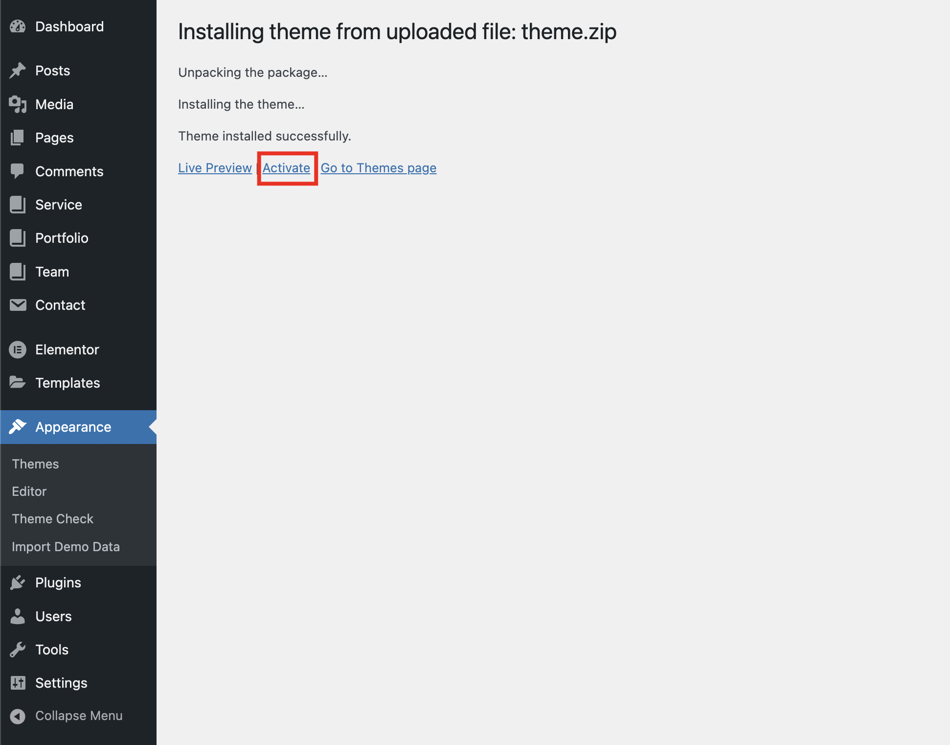 After you download the package from ThemeForest, please unzip it. You'll see a file called theme.zip, which is the main file needed to upload and install.